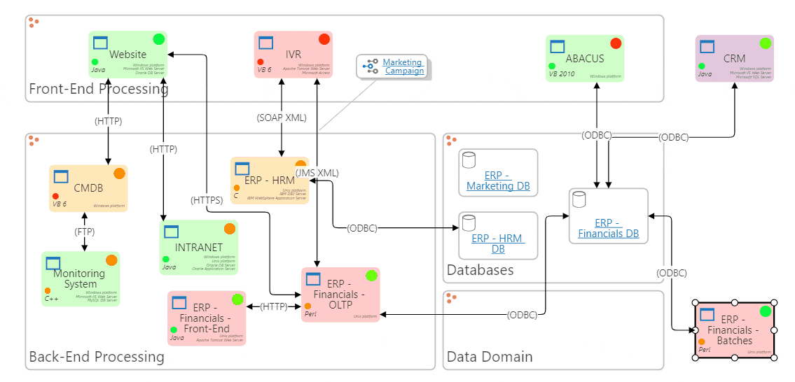 - Highlight high-risk applications and then check in on key business process and business capability diagrams to understand dependencies