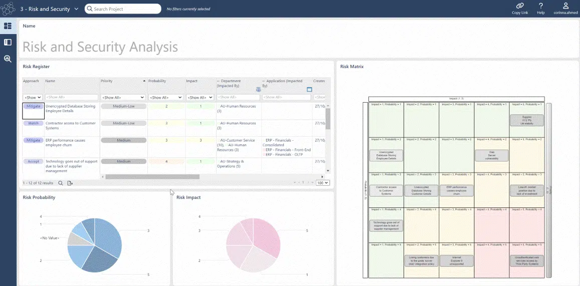 - Application Catalogs, Business Capability Maps and Risk Matrix views