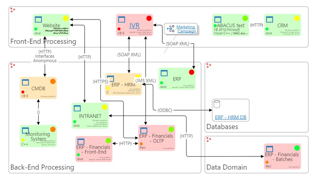 When organizations visualize their architecture and processes, they make it easier for teams to work together to improve operations. Using different types of diagrams, such as application and technology architectures, your team can can map out your technology estate. You can use a range of viewpoints to understand how elements are linked or depend on each other and plan business change with confidence. ABACUS provides a wide range of industry standards, icon libraries and templates to get started quickly with enterprise architecture diagrams and projects.