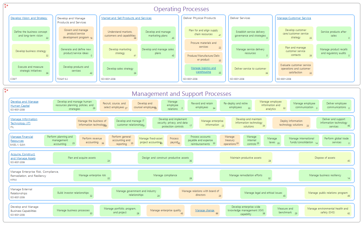 Capability Maps & Value Streams: Business capability maps provide a “building blocks” visual of business functions. They help to keep business and IT aligned, so all stakeholders can be on the same page